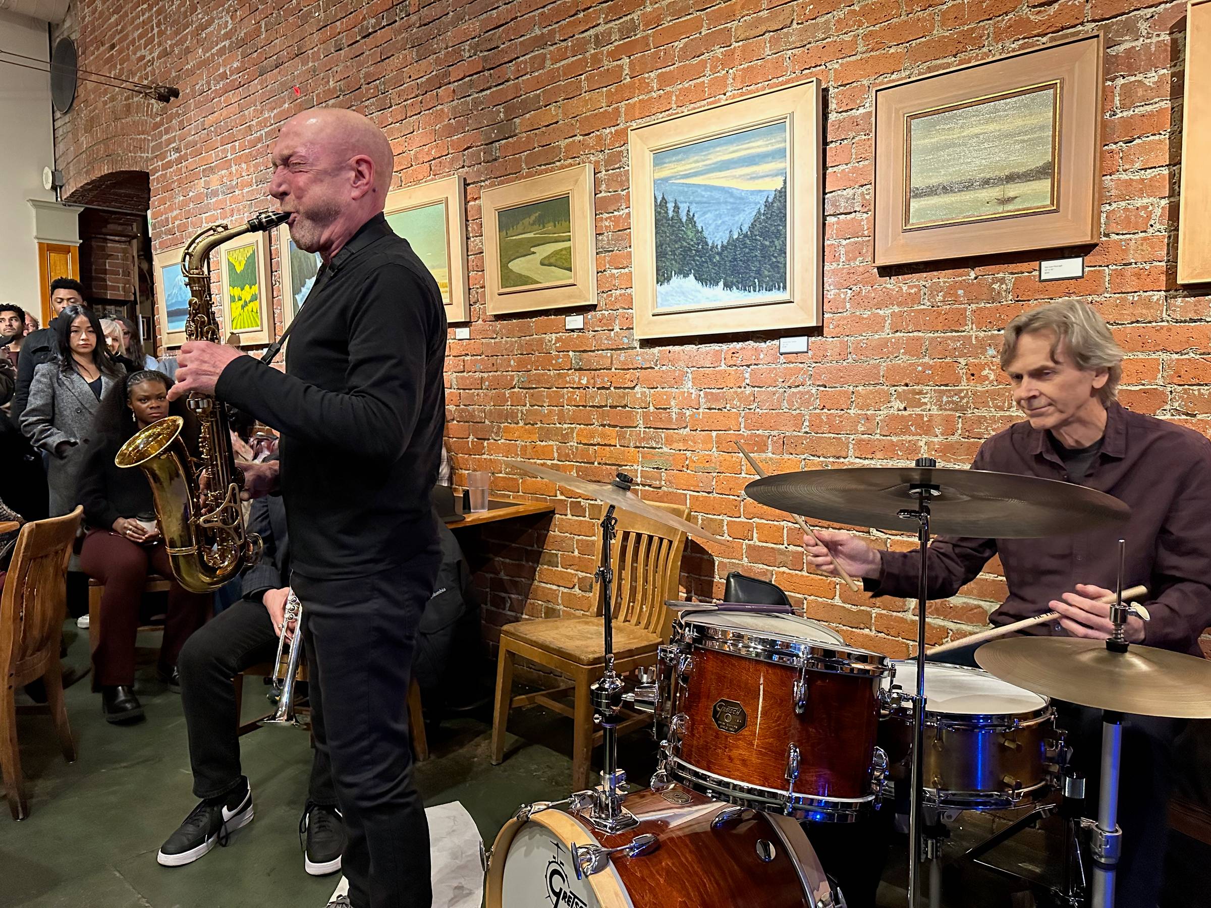 Below is my favorite pic we took that night. Over 100 people were crammed into a cool local shop called Zeitgeist Coffee to watch a band called FreeFall, and we ended up with a cozy spot right next to the action.