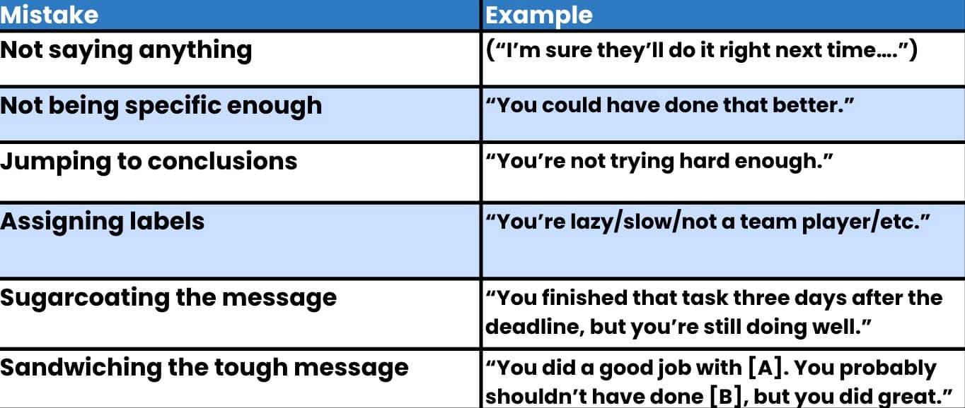 One thing I've learned is that you'll be in the top 10 percent of feedback-givers if you can just avoid these six mistakes: