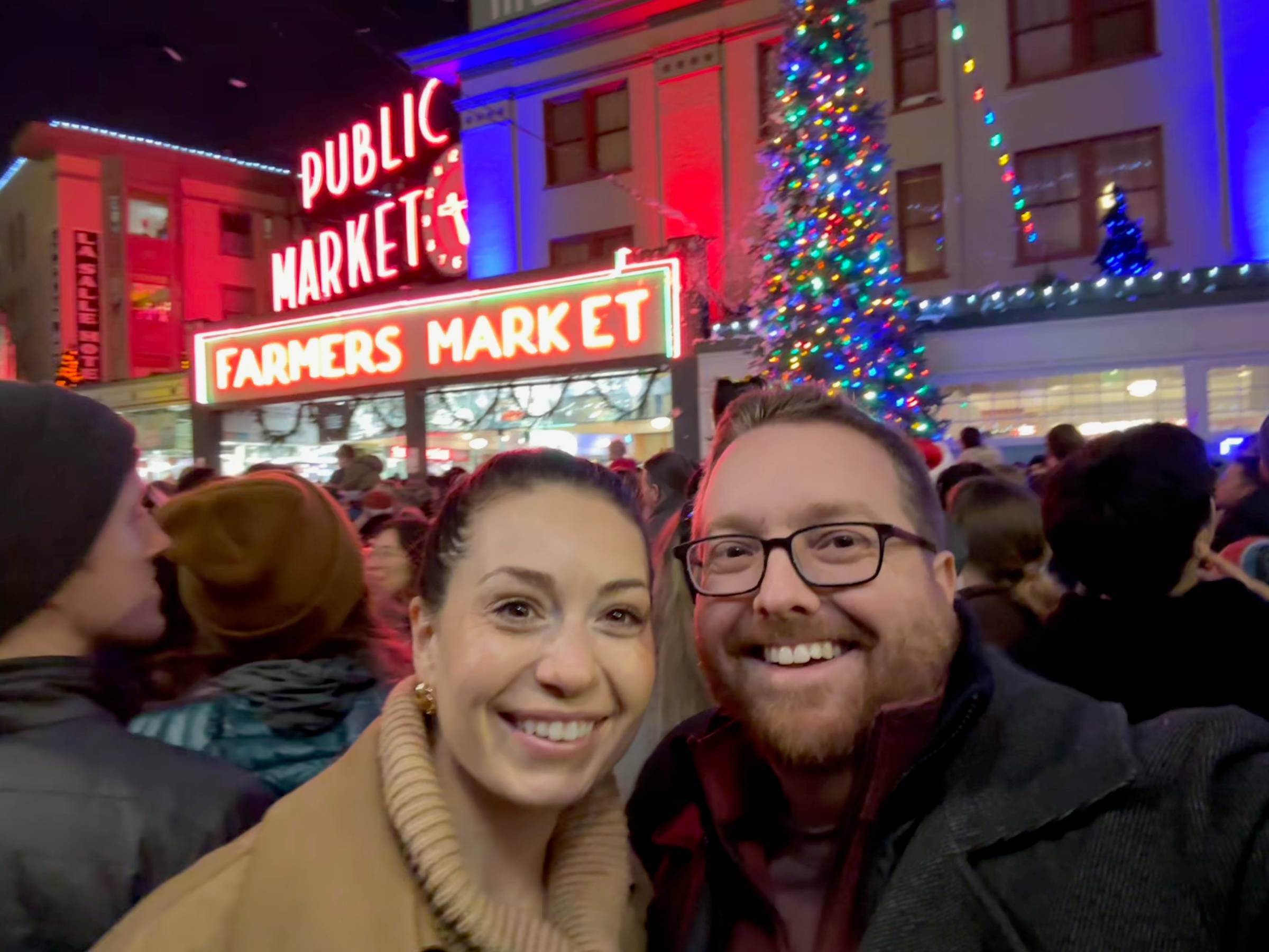 Last night, Kaylyn and I got the chance to watch the annual tree-lighting at Pike Place Market. We don't visit Pike Place often because it's a bit crazy down there, but it was fun to briefly check out in the holiday hustle and bustle.